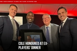 主持人艾倫-基根將科爾譽(yù)為現(xiàn)代足壇最偉大的中鋒之一,歷數(shù)其斬獲的5座英超獎(jiǎng)杯、2次足總杯及1座歐冠的輝煌成就。在300名賓客見證下,科爾與三冠王隊(duì)友加里-內(nèi)維爾、現(xiàn)役曼聯(lián)后衛(wèi)埃文斯同臺(tái)進(jìn)行了趣味問答。