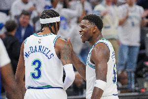麥克丹尼爾斯出戰(zhàn)38分鐘,22投13中,三分5中1、罰球4中3拿到30分5籃板1助攻2搶斷,正負(fù)值+11。