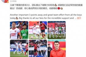 賽后,周定洋發(fā)文慶祝球隊(duì)贏球,他寫道:又拿下重要的客場3分,團(tuán)隊(duì)踢出了凝聚力和韌勁!感謝我們遠(yuǎn)征軍持續(xù)的能量輸出!回成都,耐心備戰(zhàn)兩場主場的硬仗。成都雄起!