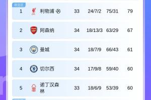 英超第34輪,切爾西1-0埃弗頓。本場比賽后,先賽的切爾西積60分升至積分榜第4,與少賽一場的諾丁漢森林同分,領先紐卡1分。