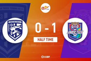 上半場比賽結(jié)束,武漢三鎮(zhèn)0-1天津津門虎。