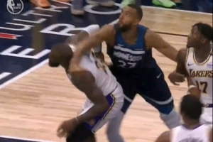 戈貝爾搶板肘擊詹姆斯后頸??詹姆斯非常憤怒!戈貝爾一級(jí)惡犯!