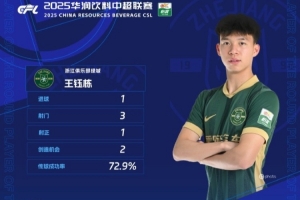 第9輪比賽,浙江隊(duì)坐鎮(zhèn)主場迎戰(zhàn)青島西海岸。比賽第62分鐘,王鈺棟右腳遠(yuǎn)射破網(wǎng),為球隊(duì)打開勝利之門,同時他也打進(jìn)了個人本賽季第 4 個進(jìn)球。
