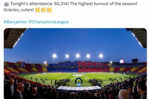 巴薩官方統(tǒng)計(jì),本場(chǎng)比賽共有50314名球迷入場(chǎng)觀戰(zhàn),創(chuàng)造巴薩主場(chǎng)本賽季觀戰(zhàn)人數(shù)最多紀(jì)錄。
