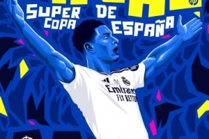 賽前,皇馬官方曬出海報(bào),為本場(chǎng)比賽預(yù)熱。貝林厄姆以漫畫(huà)版的標(biāo)志性慶祝動(dòng)作“君臨天下”出鏡,海報(bào)上方為賽事類(lèi)型,左下角為對(duì)陣雙方隊(duì)徽,最下方為開(kāi)球時(shí)間以及比賽場(chǎng)地。