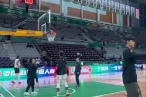 今天廣廈男籃將客場對陣遼寧男籃,賽前球隊來到球場提前熱身,吳驍籃下練習(xí)單手投籃,布朗三分手感火熱。