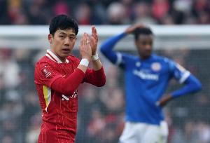 遠(yuǎn)藤航還稱贊了16歲的恩古莫哈,后者是利物浦隊(duì)史最年輕的首發(fā)球員。