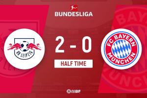 上半場比賽結(jié)束,拜仁慕尼黑客場暫時(shí)0-2落后RB萊比錫。