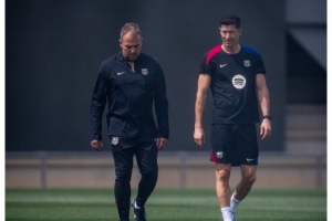 萊萬能否及時恢復(fù)出戰(zhàn)此役,成為媒體和球迷更關(guān)注的問題。巴薩官方更新社媒動態(tài),曬出萊萬在訓(xùn)練場上與弗里克的合照,確認(rèn)這位波蘭前鋒今日恢復(fù)合練。