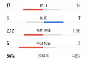 控球率:54%-46%