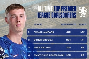 這粒進(jìn)球使得帕爾默在英超賽場為切爾西的進(jìn)球數(shù)達(dá)到37個(gè),進(jìn)入球隊(duì)英超射手榜前十。