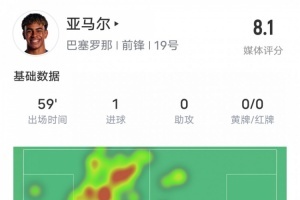 亞馬爾本場(chǎng)比賽數(shù)據(jù)如下: