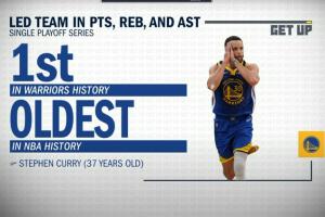 體育資訊05月06日訊 美媒GetUp統(tǒng)計(jì),庫里在本輪系列賽中,總得分、總籃板、總助攻都領(lǐng)銜全隊(duì)。