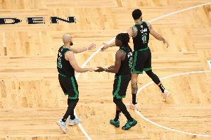 至于凱爾特人,他們以三分為生,也因三分而死,他們45次三分打鐵創(chuàng)造了NBA新紀(jì)錄?!?/p>