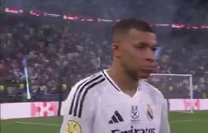 24/25賽季西超杯決賽,皇馬2-5慘敗給巴薩,賽后鏡頭給到姆巴佩。
