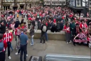 據(jù)每日郵報(bào)記者Chris Wheeler消息,大量的畢爾巴鄂競(jìng)技球迷已經(jīng)齊聚曼徹斯特的新夏波斯廣場(chǎng),今晚近4000名畢巴球迷持有比賽門票,但仍有更多球迷無(wú)票進(jìn)場(chǎng)。