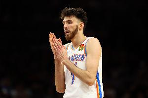 體育資訊5月8日訊 NBA季后賽次輪G2,雷霆149-106大勝掘金。大比分1-1平。賽后切特-霍姆格倫接受了記者的采訪。