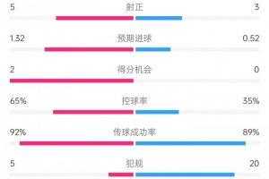 預期進球——1.32比0.52