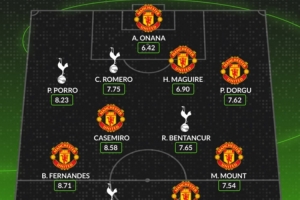 中場:B費(fèi)(曼聯(lián))、卡塞米羅(曼聯(lián))、本坦庫爾(熱刺)、芒特(曼聯(lián))