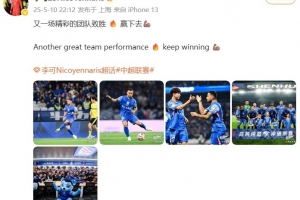 賽后李可發(fā)文:“又一場精彩的團隊致勝??贏下去????Another great team performance??keep winning ????”