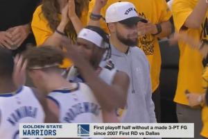 勇士上半場(chǎng)比賽三分5投0中,上次勇士季后賽半場(chǎng)無(wú)三分進(jìn)賬已是18年前,2007年首輪打達(dá)拉斯小牛(現(xiàn)獨(dú)行俠)。