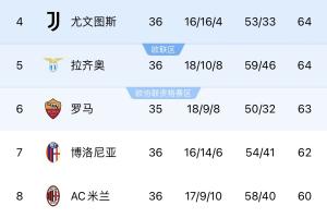 體育資訊05月11日訊 意甲第36輪,尤文遭拉齊奧1-1絕平,兩隊(duì)同積64分,意甲爭四形勢依舊撲朔迷離。
