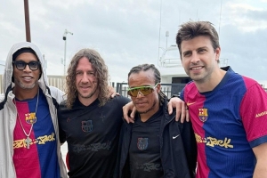 羅納爾迪尼奧、普約爾、戴維斯、皮克將觀看國(guó)家德比,巴薩傳奇社媒曬出四人的合照。