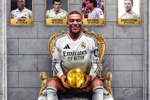 BR發(fā)海報(bào)祝賀姆巴佩登陸皇馬首季即超越一眾傳奇,以首個(gè)賽季斬獲38個(gè)進(jìn)球成為隊(duì)史首人。