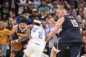 體育資訊05月12日訊 NBA季后賽西部半決賽G4,雷霆在客場以92-87力克掘金,將系列賽大比分追至2-2。