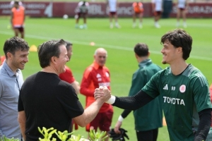 體育資訊5月12日訊 羅馬主席丹-弗里德金在上周來到俱樂部訓(xùn)練基地,看望全隊并和門將斯維拉爾握手。