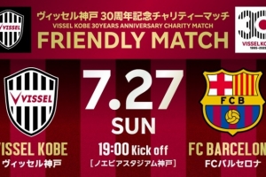 體育資訊5月12日訊 神戶勝利船官方宣布,為紀念俱樂部成立30周年,球隊將于7月27日18點(北京時間)與巴薩進行友誼賽。比賽地點為御崎公園球場。