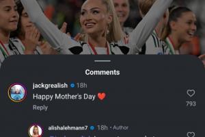 今日在網(wǎng)絡(luò)上流傳一張截圖,內(nèi)容為尤文女足球員萊曼慶祝球隊奪冠的社媒,格拉利什出現(xiàn)在評論區(qū):“母親節(jié)快樂”,萊曼回復:“我不是一個媽媽,但謝謝”,隨后格拉利什又回復:“我可以改變(你不是一個媽媽)這件事”。