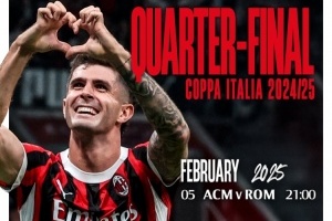米蘭官方社媒曬出海報,確認對陣羅馬的意大利杯比賽將在北京時間2月6日4點開球。