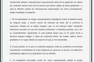 1-我從未參與過(guò)任何侵犯女性性自由的行為,更不用說(shuō)未成年女性。這一點(diǎn)得到了上述法院文書的確認(rèn)。該文書并未認(rèn)定我與涉及的兩名女性發(fā)生過(guò)性關(guān)系,也未認(rèn)定我錄制了這些視頻。同樣,還澄清了我沒有向第三方發(fā)送任何包含私密內(nèi)容的圖像或視頻,再次強(qiáng)調(diào),這些視頻是在我不在場(chǎng)的地方錄制的。