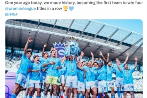 體育資訊5月19日訊 曼城官方更新社媒動態(tài),回顧去年的今天達成英超四連冠。