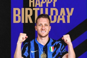 國米官方寫道:“祝澤林斯基生日快樂!今天這位波蘭中場球員迎來了31歲生日。”
