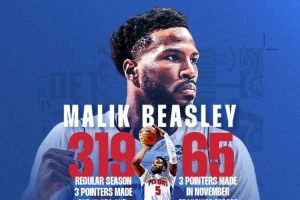本賽季比斯利命中319記三分,創(chuàng)造隊史紀(jì)錄&排名聯(lián)盟第二;11月命中65記三分創(chuàng)隊史單月紀(jì)錄,場均砍下16.3分,37場比賽砍下15+得分,三分命中率41.6%,82場全勤。