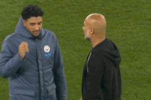 馬爾穆什本場轟入一記世界波,在補時階段球員被換下。在比賽結束后,瓜帥在場內(nèi)立刻與馬爾穆什開始復盤比賽中的瞬間。