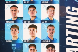 2-張衛(wèi) 4-姜至鵬10-薩卡里亞12-張曉彬 14-趙石(GK) 20-杜加利奇(C) 21-南松 23-楊一鳴 27-拜合拉木·阿卜杜外力29-王嶠 36-卡爾采夫