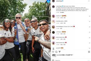 體育資訊5月24日訊 皇馬中場卡馬文加更新個人社交媒體,向即將離任的主帥安切洛蒂表示感謝,并告別。