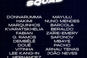 體育資訊5月24日訊 今晚凌晨3點(diǎn),法國(guó)杯決賽,巴黎對(duì)陣蘭斯。賽前,巴黎公布了本場(chǎng)比賽的大名單,K77、登貝萊領(lǐng)銜鋒線,阿什拉夫、維蒂尼亞、多納魯馬在列。