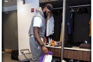 當(dāng)被問(wèn)到他見(jiàn)過(guò)的最怪異的賽前習(xí)慣時(shí),戴維斯說(shuō):“這位被譽(yù)為史上最偉大的球員之一,甚至可能是最偉大的(注:指詹姆斯)。每當(dāng)他到達(dá)比賽球館時(shí),就會(huì)把整套球衣,從球衣到短褲、襪子、鞋子,全部整齊地鋪在地上。而且,任何人都不能碰觸這些裝備。甚至到了一種程度,連從這些裝備上方走過(guò)去都不行,你必須繞道而行?!?/p>