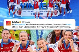 阿森納女足半決賽戰(zhàn)勝里昂,決賽勝巴薩,打破里昂&巴薩近9個賽季對歐冠冠軍的恐怖壟斷。