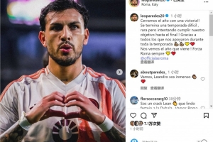 帕雷德斯賽后在社交媒體上寫道:“我們以一場勝利結(jié)束了這個(gè)賽季!這是一個(gè)艱難而奇怪的賽季,但我們?yōu)檫_(dá)成目標(biāo)努力到最后一刻!感謝整個(gè)賽季支持我們的每一個(gè)人。下賽季見!永遠(yuǎn)加油,羅馬。”