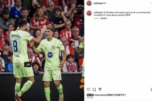 賽后,巴薩中場加維更新社媒:“球隊以一場精彩絕倫的比賽為這個不可思議的賽季畫上句號!!!!!! 巴薩永遠(yuǎn)加油!!!????”