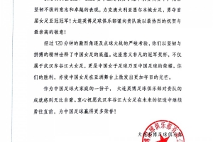 體育資訊5月26日訊 今天,大連英博俱樂部向武漢女足發(fā)去賀信,祝賀女足亞冠奪得冠軍。
