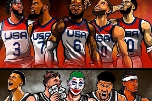 體育資訊5月27日訊 今日媒體Hoops曬出美國隊VS世界隊對陣圖,并問道:“誰會在系列賽中勝出?”