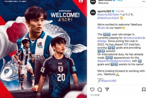體育資訊5月27日訊 體育經(jīng)紀公司Sport360昨晚官方發(fā)文,宣布正式與日本球星久保建英達成合作,將代理球員相關(guān)事宜。