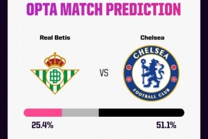 結(jié)果顯示,切爾西90分鐘內(nèi)贏得決賽的概率為51.1%,貝蒂斯為25.4%,需通過加時甚至是點球大戰(zhàn)才能決出最終冠軍的概率為23.5%。