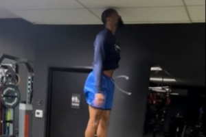 體育資訊5月28日訊 今日訓(xùn)練師Joey Bergles曬出獨(dú)行俠球員丁威迪彈跳力訓(xùn)練照。
